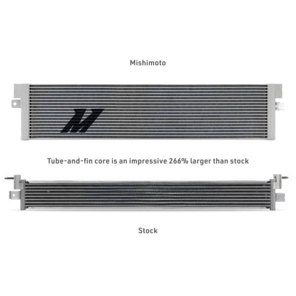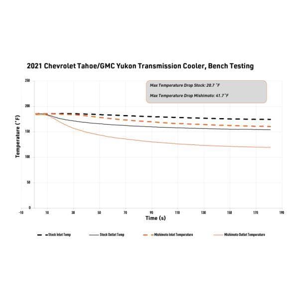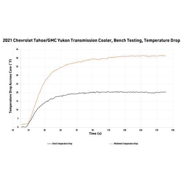 Heat is the biggest threat to your transmission’s longevity and performance. Whether your 2021+ Chevy Tahoe or GMC Yukon is hauling the family camper, towing weekend toys, or taking long summer road trips, keeping your transmission cool is essential for lasting performance and peace of mind. -- Mishimoto’s direct-fit transmission cooler is engineered with a significantly larger tube and fin core that is 266% bigger than stock and maximizes cooling efficiency. This larger capacity reduces transmission temperatures and stress, helping extend the life of your transmission while maintaining reliable operation under heavy loads. Sturdy internal strutted tubes offer greater pressure resistance and protection against chassis flex. -- Installation is straightforward with factory-compatible connections, and included bolts, plus a billet driver’s side bracket with slotted holes for precise adjustment. There’s plenty of clearance all around, and it can be installed without removing the grille, saving time and effort. -- Designed, engineered, and tested in the USA, this genuine Mishimoto cooler features a robust powder coat to protect against corrosion and road debris. Backed by Mishimoto’s Lifetime Warranty, it’s a clean, reliable upgrade that eliminates the risks of reusing your stock cooler and keeps your transmission running cooler for longer.