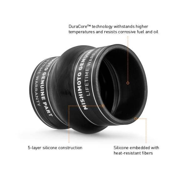 The Mishimoto factory-fit boot kit with DuraCore technology is the perfect upgrade in performance and reliability for your 5.9L Cummins.Mishimoto DuraCore technology is the synthetic material that comprises the innermost layer of all Mishimoto silicone diesel boots.Compared to normal silicone, DuraCore provides superior resistance to heat, pressure, fuel, and oil.This effectively increases the life of our boots by preventing leaks and blowouts.To add even more reliability this kit includes Mishimoto constant-tension T-bolt clamps for accurate and consistent holding power.As with all Mishimoto products, this boot kit is protected by our signature lifetime warranty.