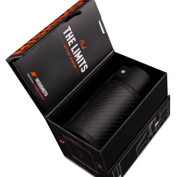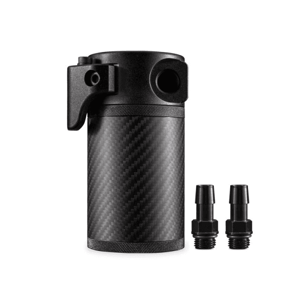 Here at Mishimoto, we don't believe in good enough. In fact It's quite the opposite. We strive in taking our products to the next level, and living by our mantra, Push the Limits. It's this attitude along with months of testing and development that has lead us to our newest patent pending carbon fiber catch can. We've taken every bit of engineering that we put into our compact catch can, and took it to the next level. For starters, we increased the size of the can to a 7.4 fluid ounce capacity. We've also constructed the can's body from 3K carbon fiber, reducing the weight but also maximizing your engine bay's aesthetic. Our carbon fiber catch can doesn't only look the part, it acts the part. We've incorporated a uniquely designed baffled insert which makes short work of separating oil and blow-by contaminates from your PCV system. The clean air is routed through our high-flow filter material, which acts as a safety net against any rogue oil droplets without compromising the improved airflow characteristics, even in freezing temperatures. We've also taken the hassle out of checking the fluid level and servicing your catch can by incorporating a quarter-turn lid. Servicing is now as easy as a flick of the wrist. We also ran several tests to ensure that our improved design would capture harmful blow-by on just about every engine configuration, and put the carbon fiber body to the ultimate test of 100,000 pressurization cycles.The carbon fiber catch can and filter are both fully serviceable, and also includes the Mishimoto Lifetime Warranty to ensure long lasting protection for your vehicle.