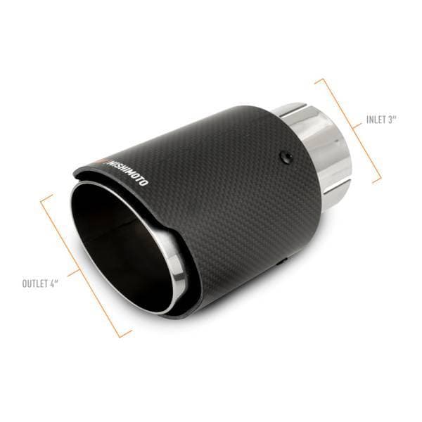 Your exhaust is the most multi-faceted system of your vehicle. It not only has to perform well, but it must also sound and look good. That makes choosing the right exhaust tip a tricky task, but luckily, Mishimoto offers a wide variety of exhaust tips that will put the cherry on top of your build.----Our carbon fiber exhaust tips are constructed from a base of 304 stainless-steel with carbon fiber shrouds for a sleek and aggressive look. We offer these tips in two styles with either polished or black chrome steel bases to match your vehicle’s aesthetic. Installation of Mishimoto exhaust tips is easy with our slip-fit design that easily fits over existing 2.5-inch or 3-inch piping and included clamp to lock your tip in place. Like all our exhaust and performance parts, these Mishimoto carbon fiber and stainless-steel exhaust tips are backed by our Mishimoto Lifetime Warranty for a lifetime of style and durability.