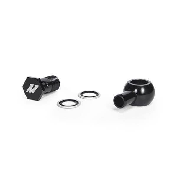 Made from 6061 aluminum, the black anodized Mishimoto Banjo Fitting with Bolt has M20 x 1.5 & 5/8" straight connections, two dowty oil seals, and the Mishimoto Lifetime Warranty.