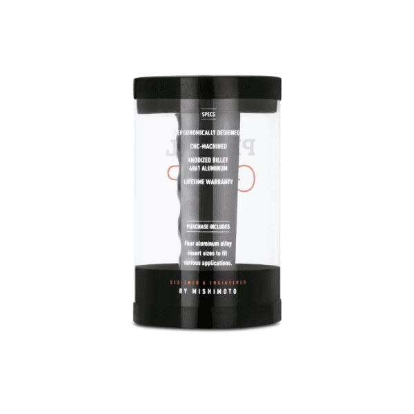 Grip and rip on your shifter in comfort. This Mishimoto pistol grip shifter is ergonomically designed for maximum comfort. Unlike many other pistol grip shift knobs this one actually fits to your fingers. CNC-machined from billet 6061 aluminum, this knob weighs in at 204g for a precise and accurate shifter feel. Four plastic inserts allow for fitment on a wide variety of vehicles.