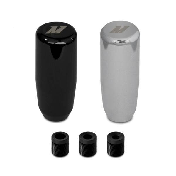 The Mishimoto Shift Knob provides a superior alternative to your factory shift knob.The weighted shift knob allows for smoother, faster shifting while the signature "M" logo and polished black or silver finish adds some Mishimoto flare to your interior.Includes three M18 X 1.5 plastic inserts for multiple application fitment.