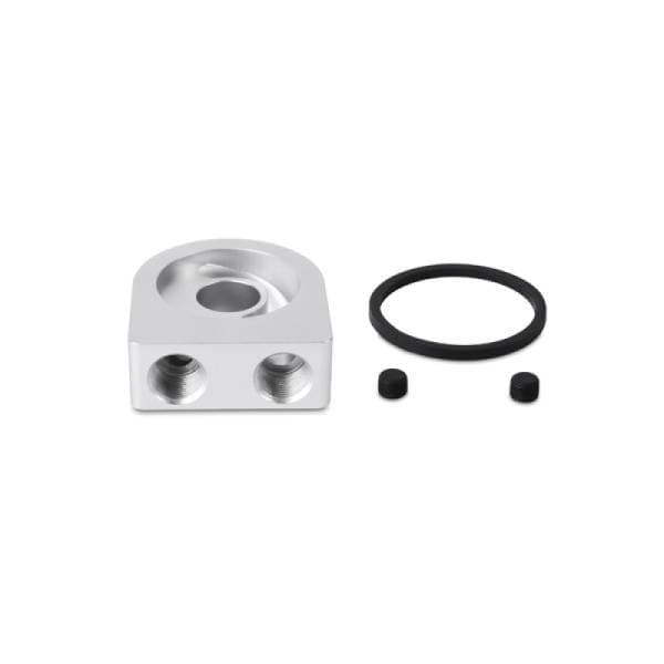 This Mishimoto Oil Sandwich Plate is a lightweight, high-flow sandwich plate that's used to regulate oil flow to the cooler until the engine is properly warmed up and allows for oil system protection in cold climates.