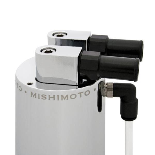 The Mishimoto Aluminum Oil Catch Can will prevent a harmful buildup of oil inside of the turbocharger, intake manifold, intercooler and piping.Our catch can prevents oil from getting into pressurized turbo plumbing and stops oil vapors from getting into the intake system that would ultimately lead to lower combustion temperatures and reduced overall efficiency.The polished Mishimoto Aluminum Oil Catch Can comes complete as a kit containing a mounting bracket, hose, all necessary clamps, fittings, and mounting hardware, for a perfect upgrade in performance and aesthetics for your car.