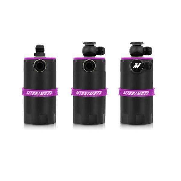 Mishimoto is proud to announce the release of our Baffled Oil Catch Can.With over a year of research and development time, Mishimoto has created the most effective oil catch can on the market.The Mishimoto Baffled Oil Catch can was designed to separate oil particles from the PCV air that would normally have just been routed back to your intake.Custom grooves in the catch can's inlet turbulates the air longer and ensures all the oil sinks to the bottom of the can, leaving nothing but clean air to pass through the 40 micron bronze filter to the intake.An internal baffle keeps the collected oil from splashing around under race conditions.The 100% billet, 6061 aluminum can accepts "AN fittings at the intlet, outlet, and drain area allowing over 25 possible configurations.For maximum fitment options, the top cog mounting setup allows the can to be mounted from multiple angles.To make maintenance easy, the drain plug can be removed to allow for "AN return to the oil pain.The can is also 100% washable, unlike many other cans that require you to replace your filtration system.The Mishimoto Baffled Oil Catch Can is available in a variety of colors as well, so it will be sure to match your style and taste!