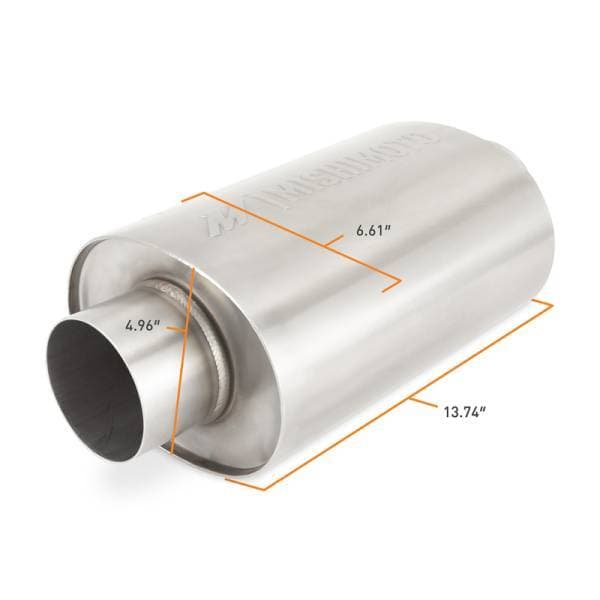 How much you enjoy driving your car or truck is directly proportional to how good it sounds. No matter how much power it makes or how well the chassis is sorted, a well-designed exhaust can mean the difference between an exciting drive and a dull commute. At Mishimoto, we offer a variety of components to make your exhaust suit your vehicle and your taste, from pipes to V-bands and now resonators and mufflers.----Our universal stainless-steel resonators are designed to bring your exhaust to life while cutting out drone and rasp. The perforated, fiberglass-packed, straight-through core suppresses unwanted noise while letting your engine growl and breathe freely. The brushed stainless-steel body and precision TIG welds add a sleek look to your exhaust and withstand even the harshest environments. Our resonators are available with 2.5-inch or 3-inch inner-diameter inlets and outlets to easily slip onto existing piping, making them easy to install. Like all Mishimoto exhaust parts, these resonators are backed by our Mishimoto Lifetime Warranty to ensure your car or truck sounds its best for a lifetime to come.