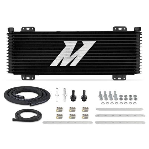 Keeping transmission fluid temperatures in check is key to extending the life of your transmission. High fluid temperatures cause reduced lubrication, which can damage seals, clutches, and bearings. Mishimoto has a solution with our highly efficient universal 13-row stacked-plate transmission cooler kit. This universal kit applies to any vehicle needing an ancillary cooler to assist in hot climates, towing, or extreme driving conditions. Our heat exchanger features a 40,000 GVW rating, making it ideal for heavy-duty applications. Within this transmission cooler kit, we include the necessary components for a typical installation. The included ¾-in-16 to 3/8-in hose barb adapter fittings feature an integrated O-ring for leak-free operation. Fifty inches of durable SAE J1532 transmission cooler hose is provided to route fluid to and from the transmission. SAE J1532 hose is explicitly designed for transmission fluids and features a spiral polyester reinforcement for increased pressure tolerance. Because routing of fluid lines is often around sharp objects or through tight passageways, we include a durable hose protection sleeve that prevents damage from abrasion. In addition, this transmission cooler includes a durable, corrosion-resistant powder-coated finish. We've included high-quality stainless-steel worm-gear clamps and 3/8-in hose barb unions for mating the hose and fittings. Rounding out our Universal 13-row Stacked Plate Transmission Cooler kit is a set of 4 universal mounting brackets and associated hardware, making installation a breeze. As with all our products, this universal transmission cooler includes the signature Mishimoto Lifetime Warranty.