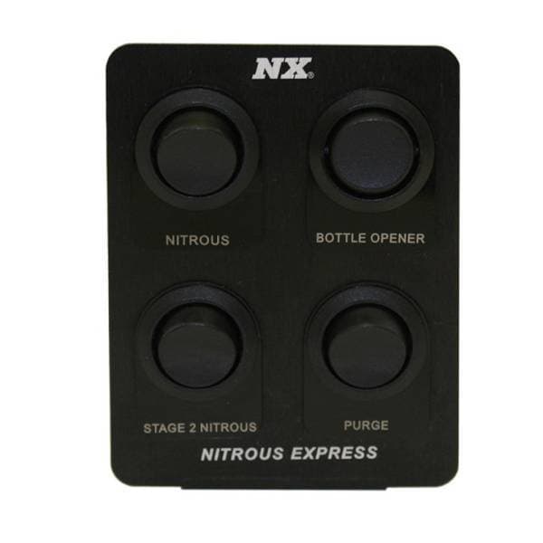 These NX switch panels offer a clean and attractive switching solution for nitrous systems as well as many other electrical devices. These switch panels include a variety of interchangeable laser engraved switch nameplates allowing you to change any switch to any location.