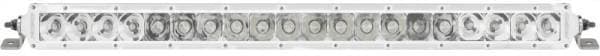 The SR-Series PRO LED Light Bars provide a sleek, low profile lighting solution that measures less than 2 in. tall. Thanks to improved LED technology, the SR-Series PRO now offers more light output than ever before with up to 111 percent more raw lumens. As the name implies, the SR-Series PRO utilizes a single row of LEDs with your choice of Hybrid or patented Specter optics in a variety of beam patterns. Ideal for applications where space is limited, the SR-Series PRO is a powerful light source designed to project light at extreme distances while consuming very little power. Available in a wide range of lengths and optics, these LED light bars can be used on virtually any application, whether it's an off-road vehicle, industrial, agricultural, or marine. RIGIDs SR-Series PRO lights utilize extruded aluminum housings and are available with either a black or white durable powder coated finish. Along with improved LEDs for more output, the SR-Series PRO benefits from prominent branding and blacked-out circuit boards for a more refined look. They feature the same superior build quality as the rest of RIGIDs lighting products, providing reliable and efficient lighting on demand. Own The Night with RIGIDs single row LED light bar.