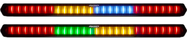RIGID 28 inch Rear Facing LED Chase Bar with 27 Pre-Programmed Modes And 5 Colors; Black Housing; Race Compliant For Series Requiring Strobing Blue; Amber; Green And Red; Tube Mounts Included; 28 inch Rear Facing LED Chase Bar with 27 Pre-Programmed Modes And 5 Colors, Black Housing, Race Compliant For Series Requiring Strobing Blue, Amber, Green And Red, Tube Mounts Included