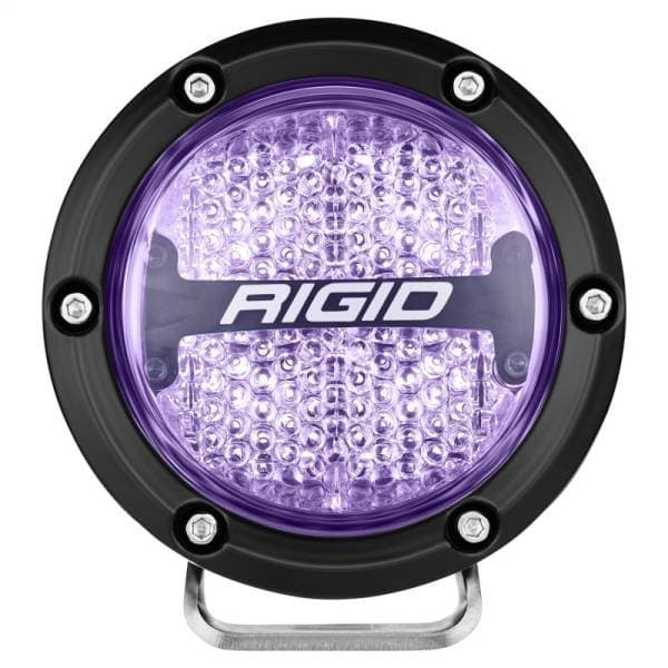 RIGID 360-SERIES 4 INCH ROUND LED OFF-ROAD DIFFUSED BEAM PATTERN FOR MODERATE SPEED (20-50 MPH) AND RGBW BACKLIGHT PAIR