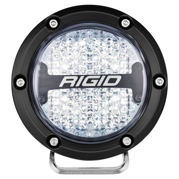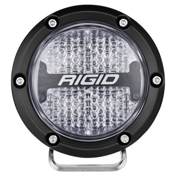 RIGID introduces the all-new 360-Series family of LED lights. The optimized beam patterns project up to 8,600 raw lumens and are protected by an aluminum housing, features a blacked-out circuit board, prominent RIGID branding, and limited lifetime warranty making them the most robust and useful round lights on the market. Choose between a 4- in. or 6- in. light, preferred backlight color and beam pattern for a customized experience and look. RIGIDs 360-Series feature beam patterns available from 17 degrees to 60 degrees, offering an option for any application. Available in 4 backlight colors: red, white, blue or amber. the RIGID 360-Series 4- in. also available in street legal SAE Compliant white and selective yellow. RIGIDs 360-Series round lights seamlessly integrate into multiple OEM applications and makes it easier than ever to Own The Night. Harness sold separately.