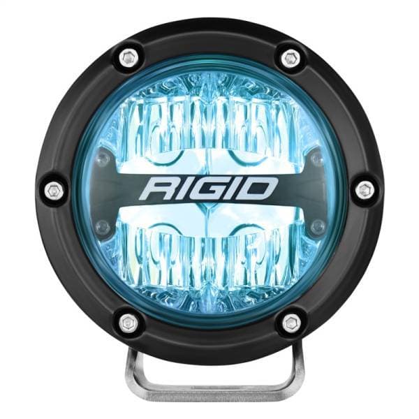 RIGID 360-SERIES 4 INCH ROUND LED OFF-ROAD DRIVE BEAM PATTERN FOR MODERATE SPEED (20-50 MPH) AND RGBW BACKLIGHT PAIR