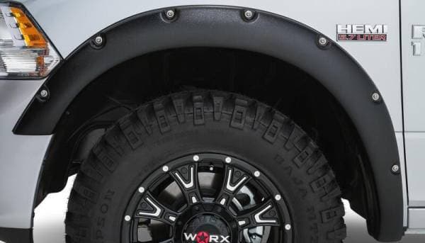 - Debossed pocket style fender flares with rivets give a bold look for your truck