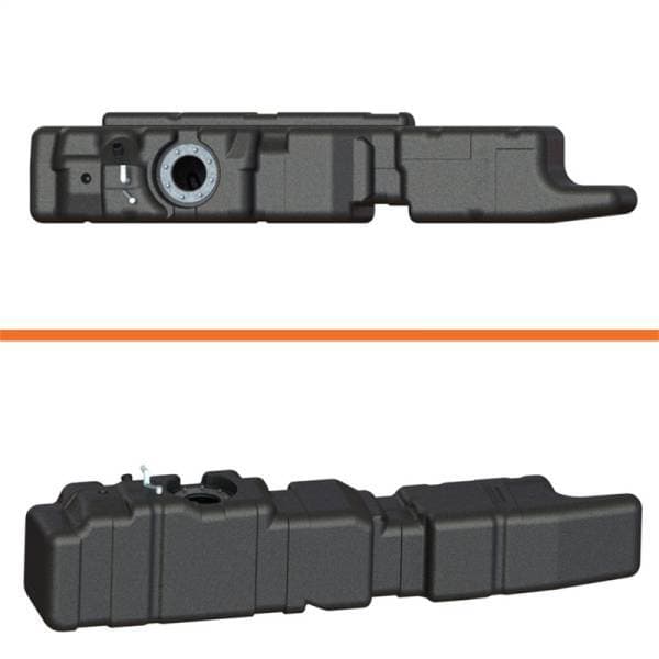 65 Gallon*, extra capacity, extra heavy duty, mid-ship, under-body, replacement fuel tank for Ford diesel pickups with Crew Cabs and 8 ft. beds. Constructed of military grade cross-linked polyethylene . Tank comes complete with powder-coated or plated steel mounting strap set, extruded rubber mounting bushings and accessories.Tank features exclusive low fuel trap design. Tank hangs approximately only 1 in. below bottom of stock tank shield bracket. For model F250, F350, and F450 vehicles with Crew Cabs and 8 ft. long beds. Very similar in appearance to original equipment tank.•LIFETIME WarrantyFor Model years: 2011-2016* For F250 HD, F350 HD, and F450 HD Models with Power Stroke Engines. Please note: This tank does NOT fit Cab & Chassis models. It is ONLY for use on trucks with short or long beds.