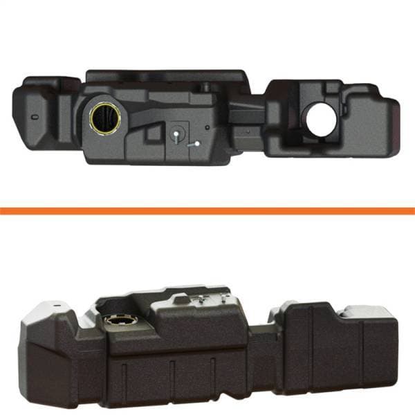 60 Gallon, extra capacity, extra heavy-duty mid-ship, replacement tank for the ultimate in fuel range. Tank comes complete with black coated, galvanized or stainless steel, mounting straps. Tapered tank features exclusive low fuel trap design so most every gallon can be used, and is approximately only 2 in. deeper than the stock OEM tank. Very similar in appearance to original equipment tank. TITAN's Generation 6 tanks feature the TITAN Torque Ring(TM) OEM style sending unit mounting system for easy, positive installation. At rated highway MPG++, this tank gives a GMC 2500 a range of over 1100 miles! This new Chevrolet/GMC tank is made of our famous military grade, cross-linked polymer (XLHDPE). It's at least ¼ in. thick and built to outlast all competitors. It's tougher than steel and more durable than aluminum. Like all fine TITAN(TM) products, this new design has undergone extensive testing. Our legendary products are so tough and well-proven that we back them with a Lifetime Warranty!. No cutting, drilling or fabrication required for installation.