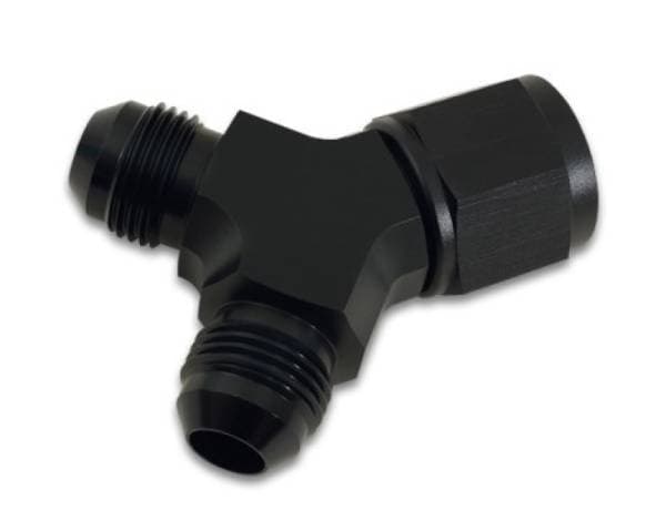 90 Degree Y Adapter Fitting; -12AN Female Size; -10AN Dual Male Size; 6061 Aluminum; Black Anodized