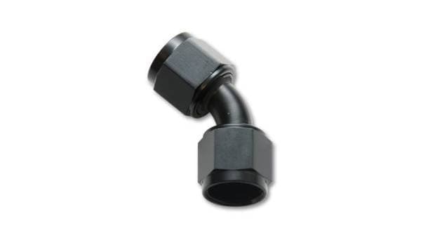 Recommended Products: 1st Choice PN: 11154, 2nd Choice PN: 11254, 3rd Choice PN: 16642, 4th Choice PN: 16842, 5th Choice PN: 10475; Female 45 Degree Union Adapter Fitting; -12AN x -12AN; 6061 Aluminum; Black Anodized