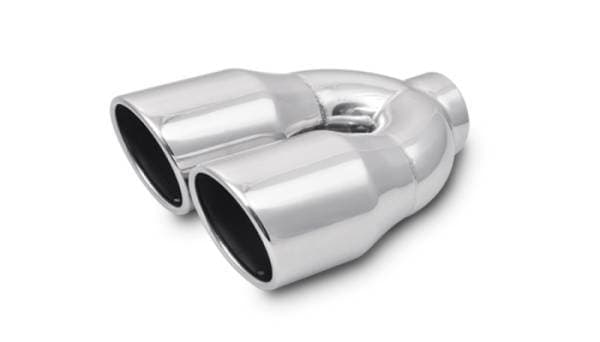 Vibrant Performance Dual Outlet, Weld-On Exhaust Tips are manufactured from 304 Stainless Steel for optimum corrosion resistance. They are available with either dual round or dual oval outlets and a variety of different outlet edge profiles. All Vibrant Performance dual outlet tips are 10 long and are offered with inlet diameters ranging from 2.25 to 2.5.