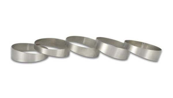 Vibrant Performance Titanium pie cuts are manufactured entirely from CP1 grade titanium for the utmost in strength, low weight and durability. They are precision laser cut and 1mm (.039”) thick. They are available in boxes of 5 cuts / box (at 9deg each equaling a 45deg elbow) and range in outer diameter sizes of 1.5” to 4”.