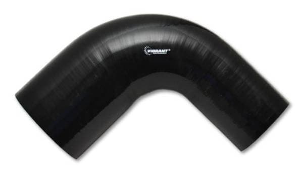 Vibrant Performance Aramid Reinforced Silicone 90 Degrees Transition Elbows feature High Temperature Resistant Aramid Reinforcement Fabric between each layer of silicone which allows for an impressive Operating Temperature Range of -75 Degrees F to 392 Degrees F (-60 Degrees C to 200 Degrees C). These elbows are intended for use in applications where pressurized tubing and connection points require a tight radius bend and size transition to accommodate the installation of piping in limited space. Not suitable for use with Oil/Fuel.