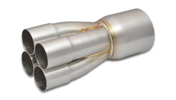 Vibrant Performance 4-1 Merge Collectors have a single slip design ideal for naturally aspirated applications, featuring precise cut mandrel bent 304 Stainless Steel tubing with high quality TIG welded construction. Vibrant merge collector expanded inlets are designed to fit perfectly with Vibrant Stainless Steel piping. 4-1 Merge collectors range from 1.75” to 2.25” for inlet, and 2.5” to 4” outlet sizes.