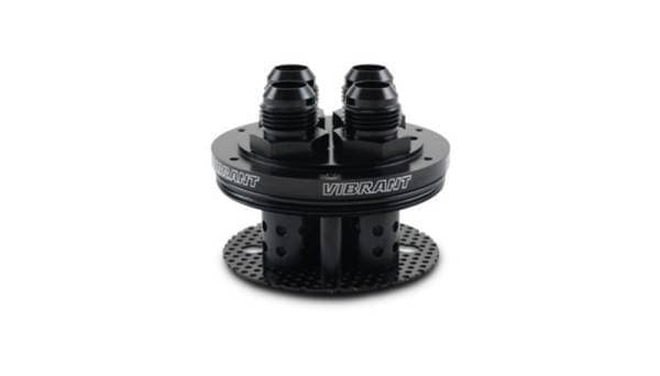 Vibrant Performance's Gen3 Catch Can Lids are available in 2-port or 4-port thread-on configurations. Our 2-port lid comes with two -12 AN male to -12 ORB male fittings and two -12 ORB filter barrels with filter material. Our 4-port lid comes with four -12 AN male to -12 ORB male fittings and four -12 ORB filter barrels with filter material. Both configurations are internally baffled.