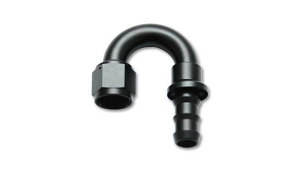 Recommended Products: 1st Choice PN: 10256, 2nd Choice PN: 10481, 3rd Choice PN: 11904, 4th Choice PN: 10231, 5th Choice PN: 10241; Push-On 180 Degree Hose End Fitting; -4AN; 6061 Aluminum; Black Anodized