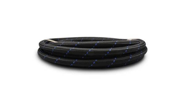 Nylon Braided Flex Hose; -6AN; 0.344 in. Hose ID; 0.5625 in. Hose OD; 500 PSI Operating Pressure; 2000 PSI BP; 20ft. Roll; Black/Blue; Recommended Products: 1st Choice PN: 17306, 2nd Choice PN: 2989, 3rd Choice PN: 20614, 4th Choice PN: 25815, 5th Choice PN: 17191