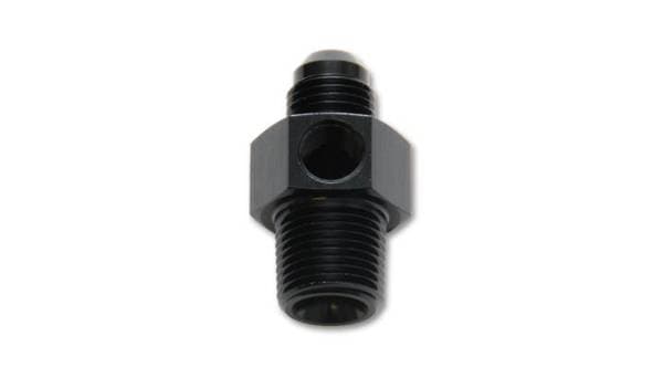 Vibrant Performance Male AN Flare to Male NPT Straight Adapters with 1/8 in. NPT Port are lightweight and constructed from 6061 Aluminum Alloy. Our Male AN Flare to Male NPT Straight Adapters with 1/8 in. NPT Port deliver quality, reliability, smooth flow, ease of assembly and the comfort of an anti-leak seal and are designed to fit most popular oil pumps, fuel pumps, fuel filters and a wide range of other common components. All Vibrant Performance Adapter Fittings are available in anodized black only. Port Plug not included.