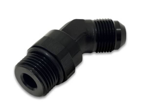 45 Degree Swivel Adapter Fitting; -8AN To -8AN ORB Size; 6061 Aluminum; Black Anodized