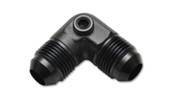 Recommended Products: 1st Choice PN: 11162, 2nd Choice PN: 21908, 3rd Choice PN: 22208, 4th Choice PN: 11200, 5th Choice PN: 11220; 90 Degree Union Adapter Fitting; -8AN; 6061 Aluminum; Anodized Black; Male AN Flare w/0.125 in. Port