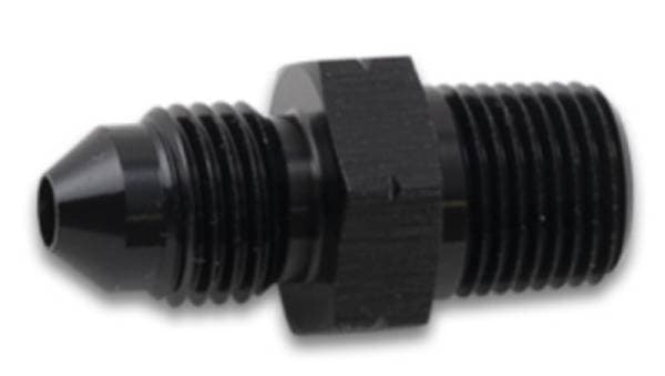 Vibrant Performance BSPT adapter fittings assist in plumbing your fluid delivery system. These BSPT to AN fittings are manufactured from quality aluminum and anodized black to resist corrosion.