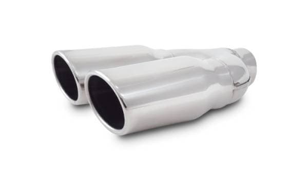 Vibrant Performance Dual Outlet, Weld-On Exhaust Tips are manufactured from 304 Stainless Steel for optimum corrosion resistance. They are available with either dual round or dual oval outlets and a variety of different outlet edge profiles. All Vibrant Performance dual outlet tips are 10 long and are offered with inlet diameters ranging from 2.25 to 2.5.