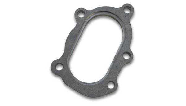 Discharge Flange; 9MM BHID; 0.5 in. Thickness; 2.5 in. ID; 87.52MM Port W; 48.9MM Port H; For GT25R/GT28R; 304 Stainless Steel; 5 Bolt; Oval; w/Divorced Ports Turbo; Recommended Products: 1st Choice PN: 1448a, 2nd Choice PN: 13053