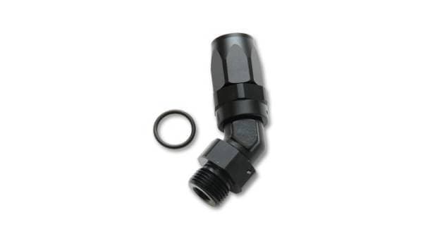 Vibrant Performance swivel-style Tight Radius Forged Hose End Fittings are lightweight and constructed entirely from 6061 Aluminum Alloy. Our Tight Radius Forged Hose End Fittings deliver quality, reliability, smooth flow, ease of assembly and the comfort of an anti-leak seal. All Vibrant Performance hose end fittings are available in anodized black only. Includes an O-Ring seal.