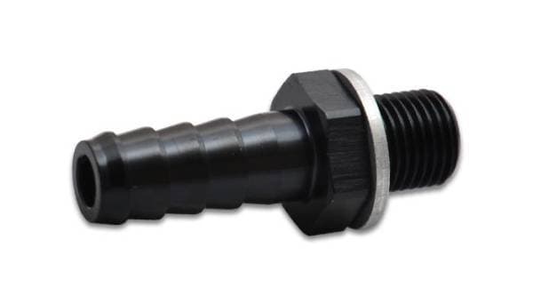 Vibrant Performance Male Metric to Hose Barb Adapters are lightweight and constructed from 6061 Aluminum Alloy. Our Male Metric to Hose Barb Adapters deliver quality, reliability, smooth flow, ease of assembly and the comfort of an anti-leak seal and are designed to fit most popular oil pumps, fuel pumps, fuel filters and a wide range of other common components. All Vibrant Performance Adapter Fittings are available in anodized black only. Includes Crush Washer.