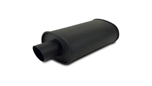 Vibrant Performance flat black mufflers are oval bodied, densely packed with our premium multi-layered sound absorption materials, and manufactured from 100% stainless steel for optimum durability and corrosion resistance. Its high temperature, flat black coating is the perfect fit for any unwanted attention and a must for any sleeper car. They are available in inlet I.D. diameters ranging from 2.25” to 4”.
