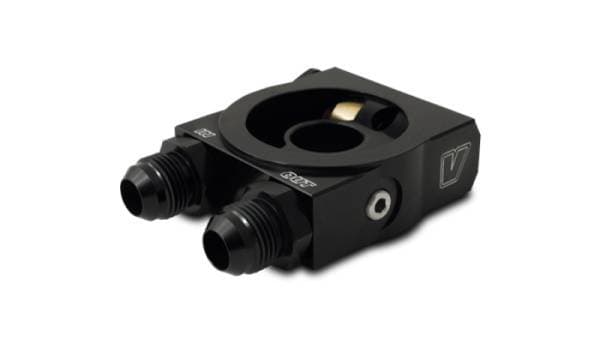 Vibrant's Thermostatic Oil Sandwich Adapter comes tapped with -10 ORB inlet/outlet ports, includes a pair of -10 AN Male Flare adapter fittings and five (5) Oil Filter adapter bolts (M18 x 1.5, M20 x 1.5, M22 x 1.5, 3/4 in.-16 and 13/16 in.-16).