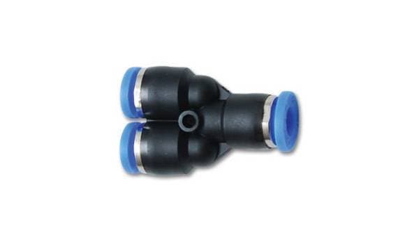 Vibrant Performance Pneumatic Union Y Push Lock Vacuum Fittings allow for simple and secure tube connections that are suitable for both ambient and pressurized air. Your vacuum tubing quickly disconnects from the fitting by simply pushing down on the release collar. All threads are PTFE coated. Maximum Operating Pressure = 150psi.
