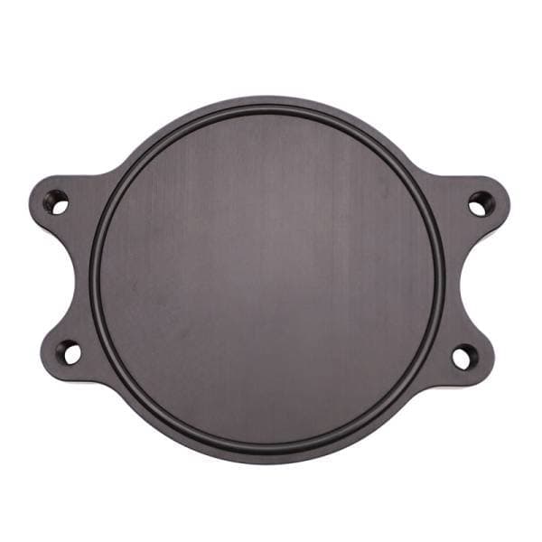 Billet Block Off plate for valley CP3 pump. Black anodized finish with engraved logo.