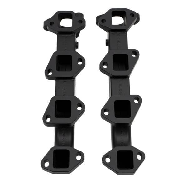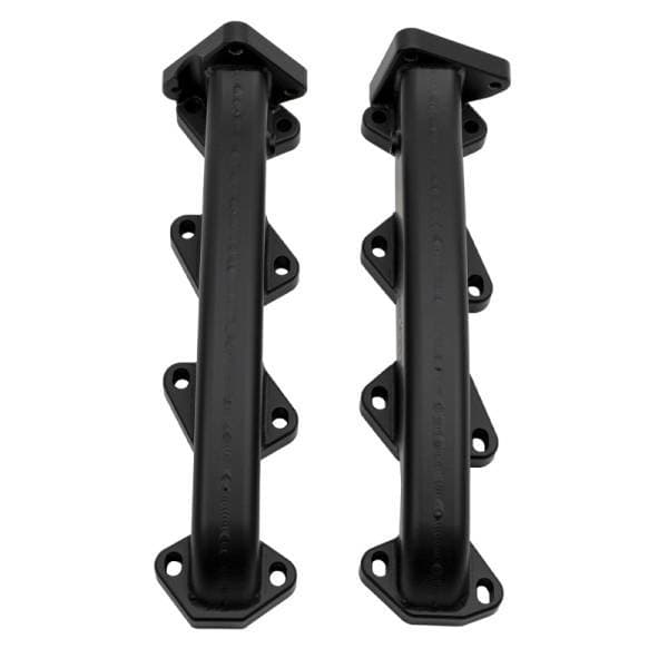 WCFab's 2001-2016 Duramax Billet Exhaust Manifolds replace the restrictive factory cast parts with high-strength, TIG-welded high-flow billet steel components. These manifolds are exhaust port gasket matched and internally divided for optimal flow with OEM or ported cylinder heads. Outlet locations allow full compatibility with OEM style up pipes and are designed to be paired with WCFab's 2" Stainless High-Flow Up Pipes (sold separately) for optimized performance. Includes new gaskets, ARP 12PT fasteners, and assembly lube for easy install (up pipe fastener kits sold separately). Finished in Black Ceramic Coat rated for 2000 deg F.