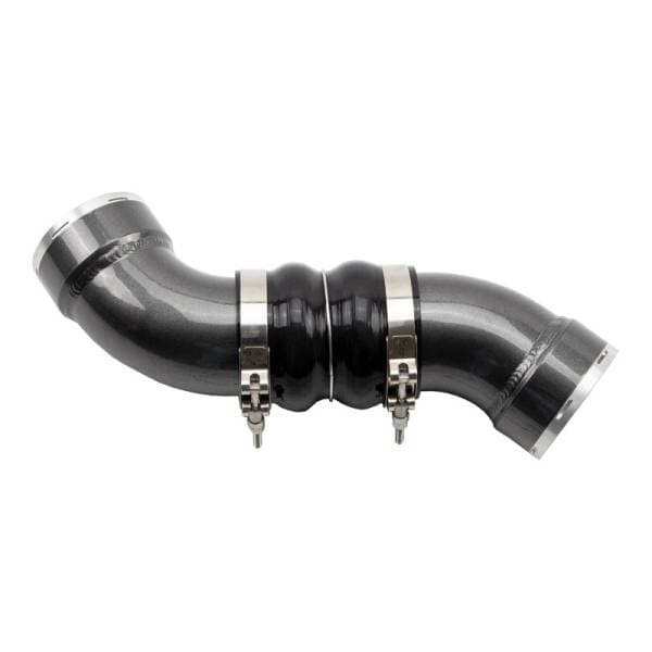 The 3.5" High Flow Passenger (Cold) Side Intercooler Pipe Kit for 2006-2010 LBZ/LMM Duramax replaces the failure prone factory plastic piece with a larger, high flow, 14 ga. aluminum fabricated 3.5" pipe. This part uses CNC machined flanges with double o-ring seals, comes supplied with a new wire clip rings for both slip flanges, and uses an upgraded silicone hump boot with stainless steel t-bolt clamps to withstand higher boost pressures than the factory components to increase reliability and eliminate blown factory boots and horsepower robbing boost leaks. Finished in your choice of custom powder colors.This pipe is compatible with stock trucks requiring no additional modifications, upgrades, or tuning for installation. Improves airflow between the turbo and engine for improved efficiency, throttle response, and turbo spool up. Eliminates weak points in the factory design that can lead to boost leaks or complete failures in hard working and high performance applications. Installs easily with basic hand tools. Pairs best with emissions compliant tuning and drop in turbochargers for optimum performance gains.