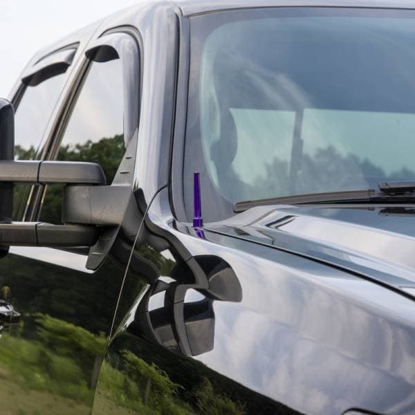 This low profile billet aluminum antenna is styled to resemble a TIG torch cap and is designed to replace the long, ugly OEM aerial antenna on your 2007.5-2019 GM HD 2500 / 3500. Cleans up the appearance of your truck by removing the long stock antenna. Available in your choice of custom powder coat finishes. Made in USA. Installs in minutes with simple hand tools. Compatible with Bluetooth Audio & Satellite Radio. Note: This product is intended solely as an appearance upgrade for your truck and will experience reduced AM/FM radio channel reception compared to the stock antenna mast. Also compatible with 2014-2023 GM 1500 pickups and 2019+ GM 4500 / 5500 / 6500 L5D Duramax Medium Duty trucks.