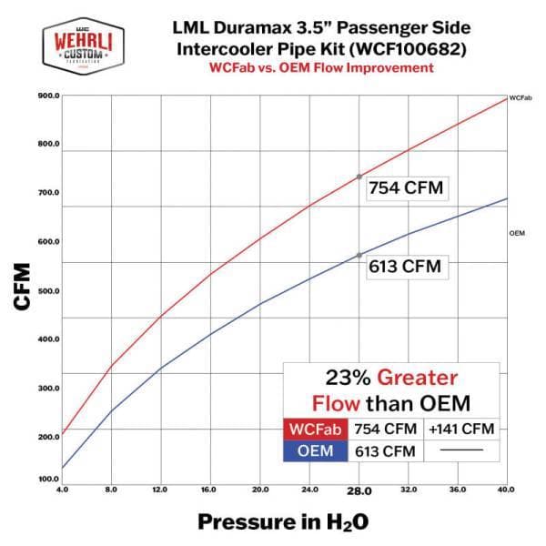 The 3.5" High Flow Passenger Side Intercooler Pipe for 2011-2016 LML Duramax replaces the factory plastic two-piece pipe with a high flow, 14 ga. aluminum one piece 3.5" pipe. This part uses upgraded silicone boots to withstand higher boost pressures than the factory components to increase reliability and eliminate blown factory boots and horsepower-robbing boost leaks. Finished in your choice of custom powder colors. This pipe is compatible with stock trucks requiring no additional modifications, upgrades, or tuning for installation. - - Improves airflow between the turbo and engine for improved efficiency, throttle response, and turbo spool up. Eliminates weak points in the factory design that can lead to boost leaks or complete failures in hard-working and high-performance applications. - - Installs easily with basic hand tools. - - Pairs best with emissions-compliant tuning and drop-in turbochargers for optimum performance gains. - - Replaces the following GM Part Numbers: 22737494, 20930188, 23421455, 84094727