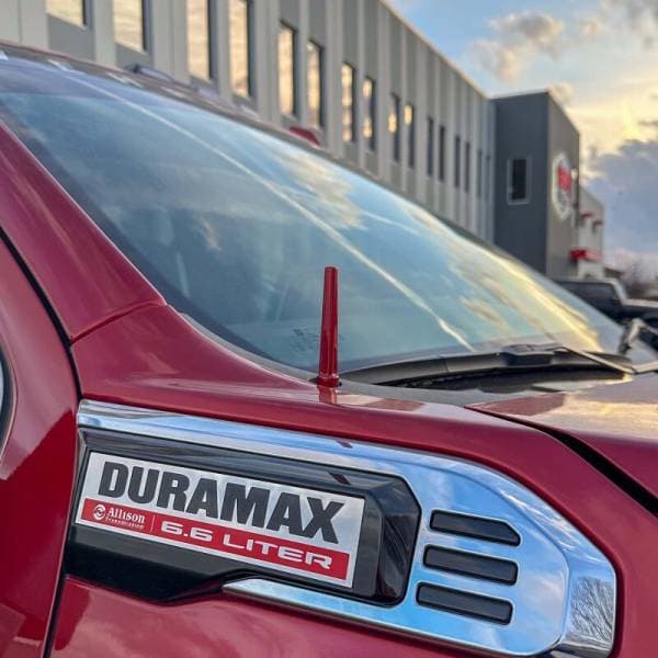 This low profile billet aluminum antenna is styled to resemble a TIG torch cap and is designed to replace the long, ugly OEM aerial antenna on your 2020-2025 GM HD 2500 / 3500. Cleans up the appearance of your truck by removing the long stock antenna. Available in your choice of custom powder coat finishes. Made in USA. Installs in minutes with simple hand tools. Compatible with Bluetooth Audio & Satellite Radio. Note: This product is intended solely as an appearance upgrade for your truck and will experience reduced AM/FM radio channel reception compared to the stock antenna mast.