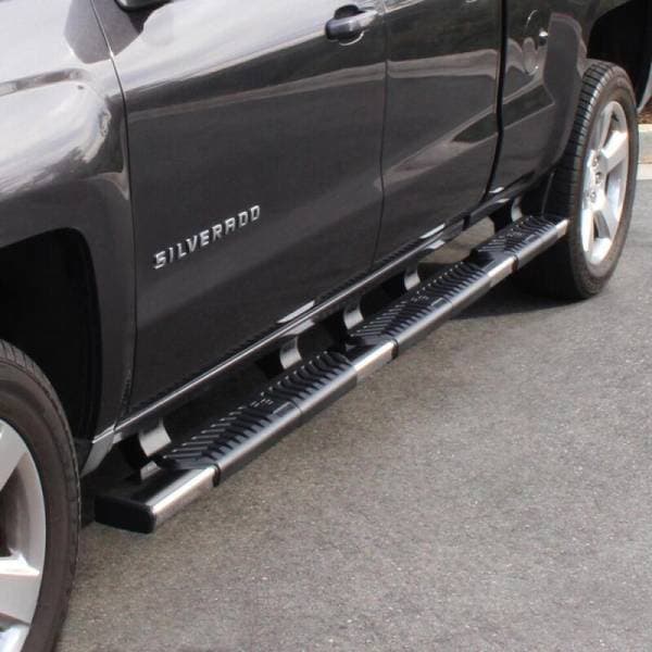 Get a boost, with Westins R5 M-Series Wheel-To-Wheel Nerf Step Bars. The extra wide 5in. footprint step design provides easier and safer vehicle access for both drivers and passengers. Developed and engineered in the USA, the R5 M-Series Wheel-to-Wheel Nerf Step Bars feature three oversized skid resistant step pads allowing easy access to the vehicle cab or truck bed cargo area. Built with high-grade and corrosion resistant steel designed to mount directly to your vehicles existing rocker panels. The modular design saves you money on shipping, as no truck freight costs are required. Also included are injection molded bracket covers for a clean and stylish look. Westins exclusive Isolator Bracket supports the step bar past the truck cab, a feature that competitors do not offer. Without an Isolator Bracket, the step area that extends past the vehicle is left unsupported. Westins unique design provides added bar support without resulting in annoying creaking sounds.