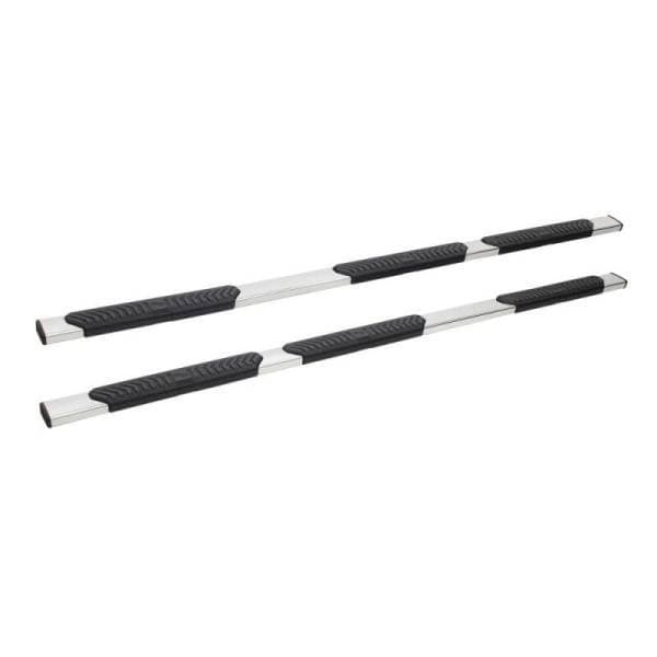 Get a boost, with Westins R5 M-Series Wheel-To-Wheel Nerf Step Bars. The extra wide 5in. footprint step design provides easier and safer vehicle access for both drivers and passengers. Developed and engineered in the USA, the R5 M-Series Wheel-to-Wheel Nerf Step Bars feature three oversized skid resistant step pads allowing easy access to the vehicle cab or truck bed cargo area. Built with high-grade and corrosion resistant steel designed to mount directly to your vehicles existing rocker panels. The modular design saves you money on shipping, as no truck freight costs are required. Also included are injection molded bracket covers for a clean and stylish look. Westins exclusive Isolator Bracket supports the step bar past the truck cab, a feature that competitors do not offer. Without an Isolator Bracket, the step area that extends past the vehicle is left unsupported. Westins unique design provides added bar support without resulting in annoying creaking sounds.