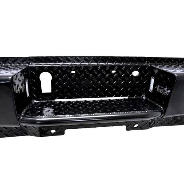 "Stand out from the Competition" with the all new HDX Bandit Rear Bumper from Westin. Built to compliment the style, precision, and durability of the matching HDX Bandit Front Bumper, this all new "off-road style" rear bumper, is clearly a cut above. Unlike the competition, which features an overlapping two piece design and an ugly weld which can warp the metal and is prone to rust, the new HDX Bandit Rear Bumper features an extremely clean, one piece design. The stamped diamond plate step surface is constructed of 11 gauge plate steel and features a welded inner structure for maximum strength. A unique "corner step" design provides extra wide step area to allow easy access to bed and cargo area. HDX Bandit Rear Bumper includes hardware, mounting brackets, flush mount LED license plate lights and two standard LED back up lights. Fully compatible with blind spot monitors and parking sensors, and can also accommodate an OEM hitch. HDX Bandit Rear is designed for heavy duty performance and extended life that is backed by a 3 year warranty with a black powder coat finish. The new HDX Bandit Rear Bumper is truly in a class by itself.